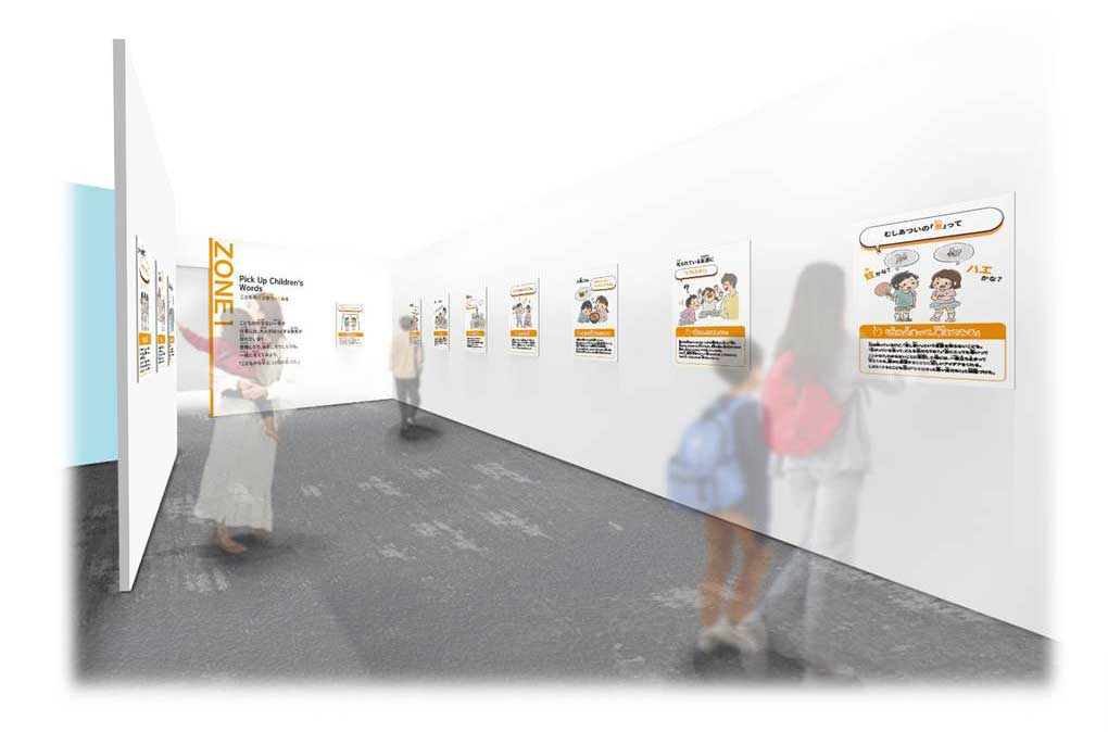 保育現場で生まれた“こどものことば”を展示するパネルゾーン。